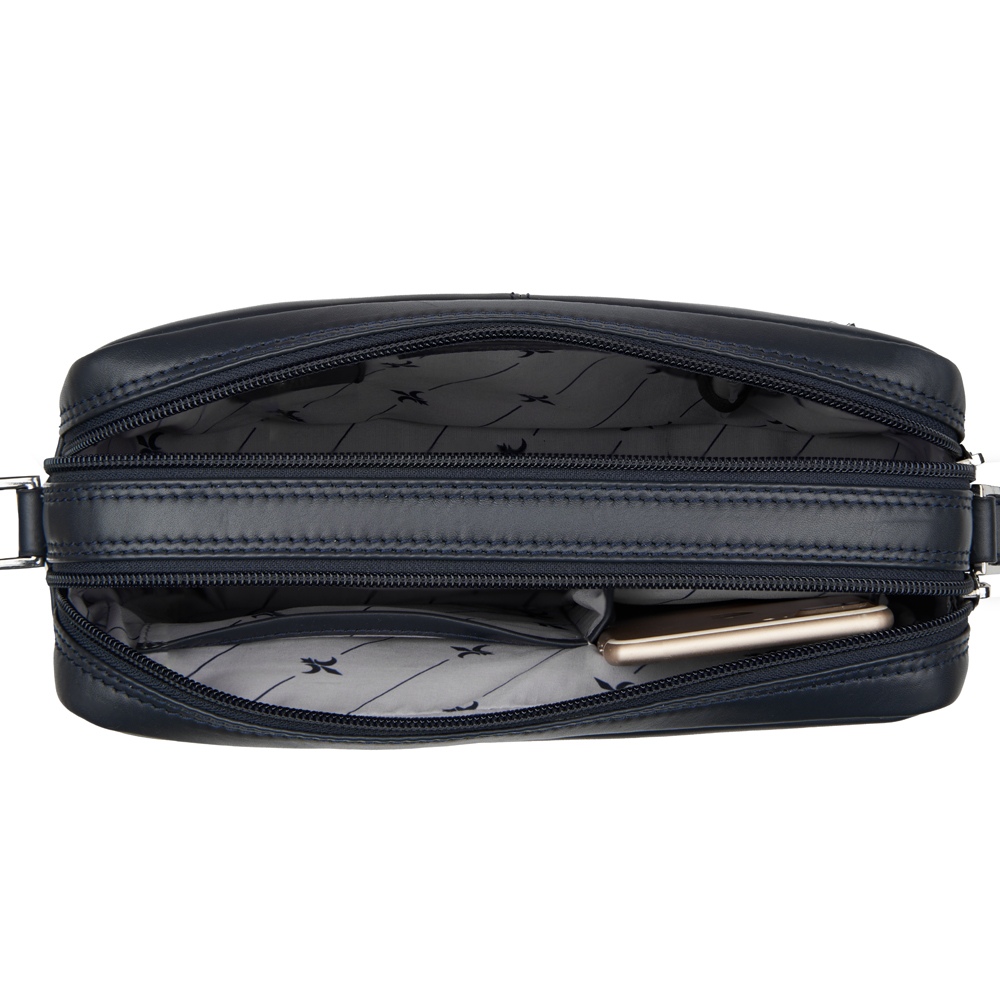 1 Trageriemen verstellbar, 2 Hauptfächer, 1 LED-Licht Halterung, 1 Kugelschreiber-Schlaufe, elastisch, 1 Reissverschlussfach, 1 Reissverschlussfach a. d. Vorderseite, 1 Reissverschlußfach a. d. Rückseite
