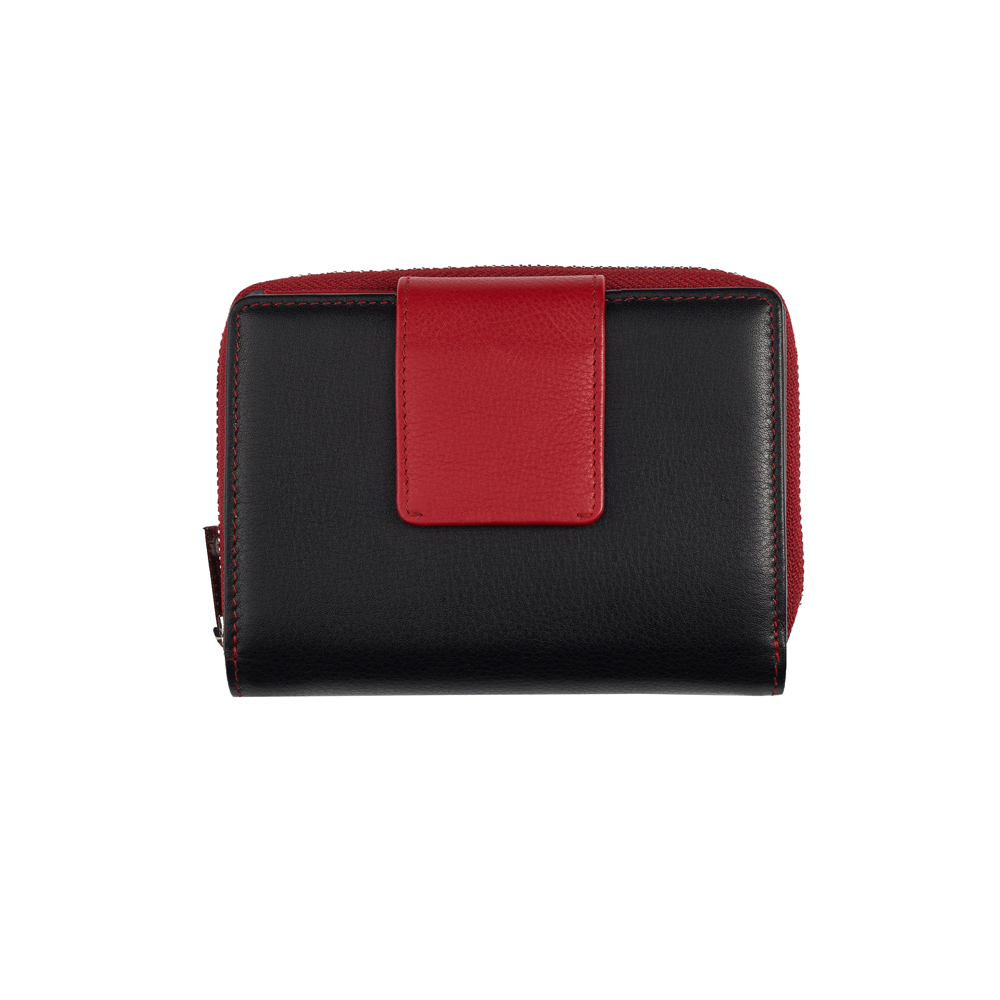 1 RFID Hacker Protection, 12 Kreditkartenfächer, 1 Fotofach, 1 Münzfach geteilt, mit RV, 1 Notenfach, 6 Steckfächer, 1 Sicherheitsverschl. mit Druckknopf, außen, 1 Steckfach aussen