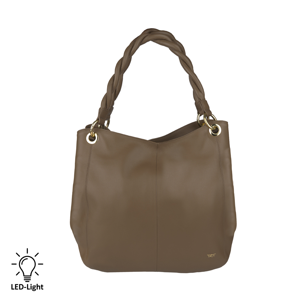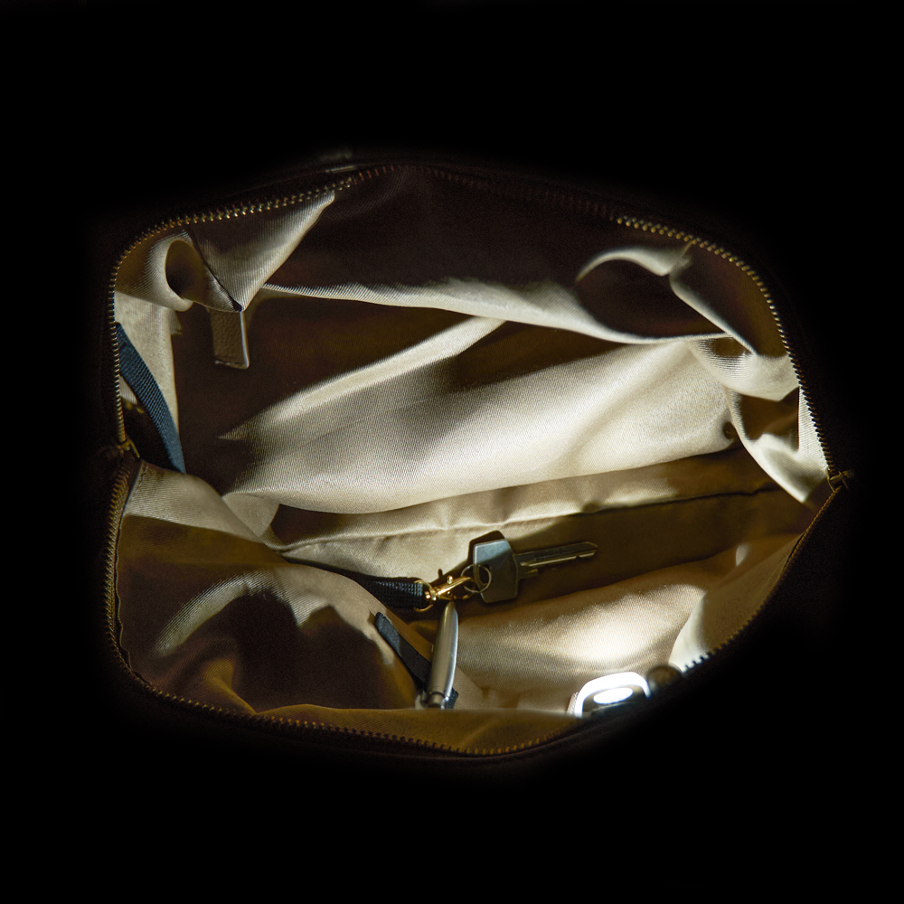 2 Tragegriffe, 1 Trageriemen, abnehmbar, 1 Hauptfach m. RV + 2 große Nebenfächer mit Magnetknopf, 1 Schlüssel-Band mit Karabiner, 1 LED-Licht Halterung, 2 Kugelschreiber-Schlaufen, elastisch, 1 Reissverschlussfach, 1 Handyfach, LED-Licht nicht enthalten