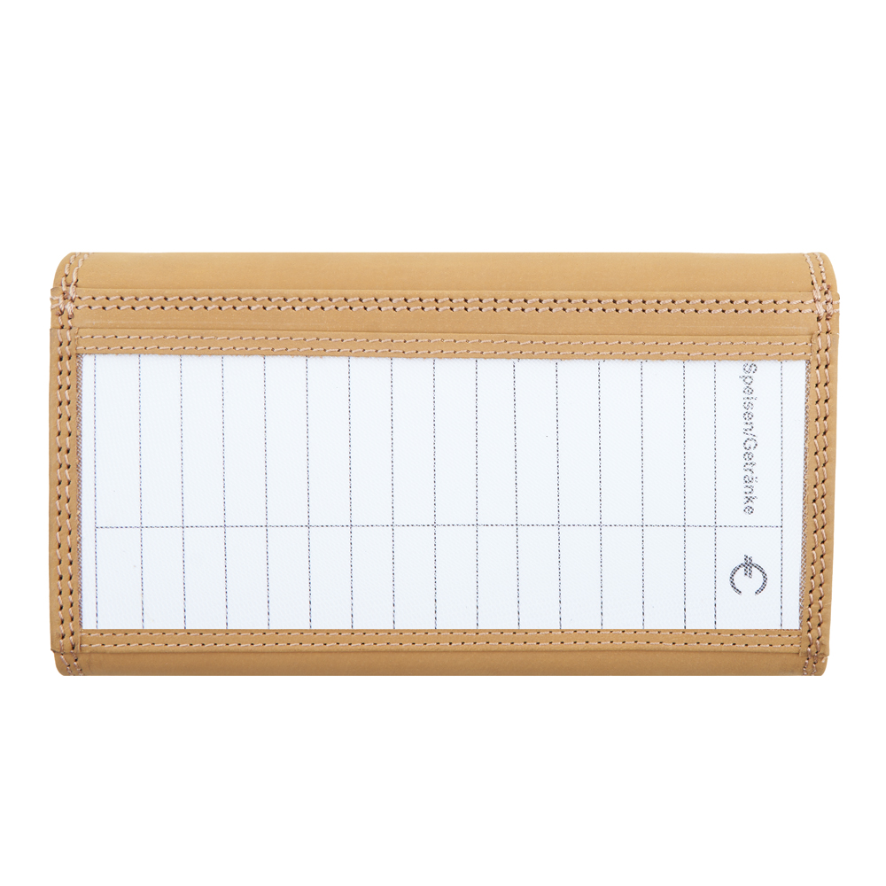 1 Münzfach mit Schüttrand + Lederfutter, 5 Notenfächer, 1 Klarsichtfach, 1 Steckfach aussen, 1 Steckfach, 2 Druckknöpfe Marke Prym , 2 Vorfächer mit Seitenkeilen, Außen u. innen komplett in Leder. Mit Speisen und Getränkekarte im praktischem Klarsichtfach auf der Rückseite. Die Kellnerbörse für den Profi