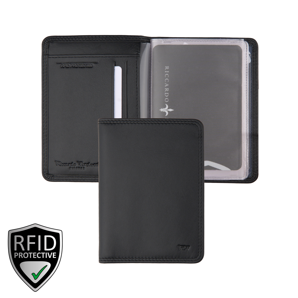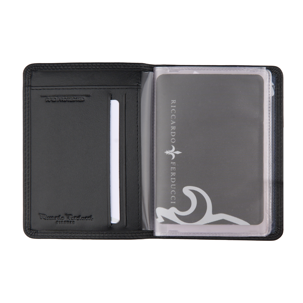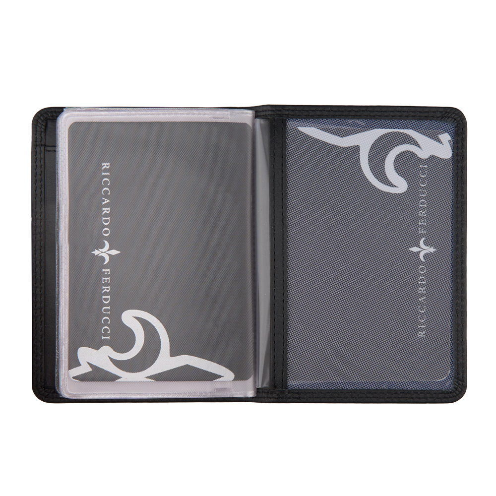 1 RFID Hacker Protection, 2 Kreditkartenfächer, 1 Steckfach, 1 Klarsichteinlage A 7 – 6 Blätter, 1 Klarsichtfach, 1 Sicherheitsverschl. mit Druckknopf, außen